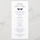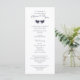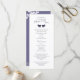 Fåglande fåglar och lacy löv foliage woodland, rustic land-design i lila. Bröllopsprogrammets kort är två sidor med ceremonier på framsidan och bröllopsfesten på baksidan.