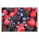 Vackra skogsfruktsbakgrund med olika skogsfrukter som blåbär, hallon och björnbär.
