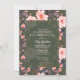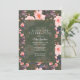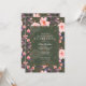 Elegant, vintage inspirerade födelsedagsfest inbjudan med ett blommönster för rosa på mörk grönt grund. Texten kan redigeras fullständigt och kan ändras till vilken händelse som helst.