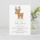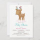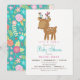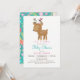 Skogshjort flicka blommig baby shower inbjudan. Inbjudan har rosa, turkos, orange och gröna blommor.