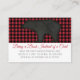 Skogshuggar-Ruta Björn Pojke Dopp Bringa en bok-biljett. Röd och svart, buffel-ruta, skogshuggar-mönster med älg, hjort och skogsträd för en rustik pojke baby shower tema. "Bringa en bok Shower-kort" finns endast i en förpackning om 100. Lägg dem i era shower-inbjudningar för att uppmuntra era gäster att ta med en bok istället för ett kort. Upphovsrätt.