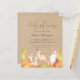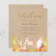 Den här roliga babyduschinbjudan är perfekt för babyduschar i gender neutralt! Med en (digital) papper bakgrund med bakgrund med vattenfärgade trädsdjur vid grund med höst löv som omger dem. "Babydusch" visas i ett faux-guld-skript längst upp med dina party-detaljer placerade under det i enkel typografi. Som en del av budgetvalet här om Zazzle, bjuder dessa in kom i begränsada storlekar och pappra lagrar. Om du behöver ett annat storlekt eller pappert lagrar kan du överföra den här designen till ett standardformat 5x7 med hjälp av verktyg för designöverföring för fler alternativ.