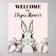 Med en elegant blomsterdesign och klassisk kaninillustration är denna välkomstskylt perfekt för din kanintemafest.