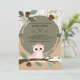 Den berömvärda rosa uggla-babyduschinbjudan med ett gediget skogsområde med akorner, grenar och mjuka jordtoner. Perfekt för fallskärmar eller skogskrävande babyduschar. Redigerbar och utskrivbar design. Om du behöver någon annan matchande produkt eller anpassning kan du skicka ett vänligt meddelande via Zazzle.