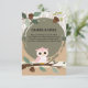 Den berömvärda rosa uggla-babyduschinbjudan med ett gediget skogsområde med akorner, grenar och mjuka jordtoner. Perfekt för fallskärmar eller skogskrävande babyduschar. Redigerbar och utskrivbar design. Om du behöver någon annan matchande produkt eller anpassning kan du skicka ett vänligt meddelande via Zazzle.