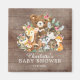 Söta små trädjur sätter sig på rustik träbakgrund. Finns i vår butik för en pojkars barndusch. Besök vår butik för att se hela våra vänner på skogsområdet.