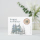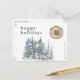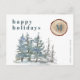 Den enkla eleganten blå grått-vattenfärgen gräs träd-skog och en monogrammad brunträlogg skapar ett helgdag-vykort för företag i rustik snyggt-klass för kunder, partners eller anställda. +++++++ Enkel att anpassa med ditt företag namn, monogram/namn initialer, ditt önskemål (du kan ändra 2 linjer text) på framsidan, returadressen, texten och namnteckning på baksidan. ++++++++++++ I fodral behöver du designändringar eller hjälp. Skicka mig ett meddelande!