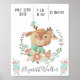 En gåva till dig själv eller andra är den här toppen söta födelsestatistik som poster med blommigtens andedräkt och bukett av daisy i pastel färg med baby skogsvänner. All information är i handskrivet teckensnitt. Sök efter fler objekt i vår butik från den här samlingen