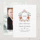 Vattenfärg bröllop sparar datum med en fantasifull skogstema-heraldisk vapensköld som kan anpassas med de nygifta förnamnsinitialerna.