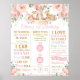 En perfekt detalj till din lilla flickas första födelsedagsfest! Denna vackra Woodland Animals Blush Rosa Blommiga 1:a Födelsedags Milstolpar Födelse Statistik Affisch är perfekt att rama in och placera på en efterrätten/tårta bord och använda som dekoration i barnkammaren efteråt. Bra som fotorekwisita för mycket speciella och minnesvärda födelsedagsbilder! Det gör också en underbar enastående present!
