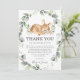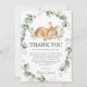 Skogsmark Hjort Rustic Grey Leafy Baby Shower Tack Kort