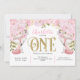 Skogsmark, Rosa Blommigt, Fox, flicka, 1:a födelsedagsinbjudan