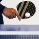 Skogsmarkkamouflage som jag sjunker pingisracket