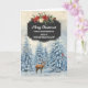 God jul för son och dotter med jaktkort med den rustiska land-kritan mönster och den snöfärgade skogsscenen med hjort och fåglar.