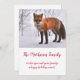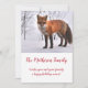 Skogsräv i julkort i snö helgdag. Anpassa till din familj namn. Rustiska vinter-naturfotografier. Det här stil är också lämpligt för ett företagskort. Lägg bara till företaget namn i stället för namn.