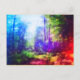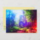 Vykort med mitt färgförstärkta foto av solbelyst skogsväg