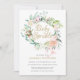 Med guldmanus babyfirande rubrik ramad av en krans av söta sommarrosor. Personifiera den blivande mammans namn i guld och detaljerna för babyfirandet i dammig grå text på denna chic babyfirande inbjudan. Designad av Thisisnotme©