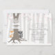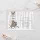 En barnduschinbjudan med en illustration av en räv, en uggla och en tvättbjörn som står runt ett träd i en snöskog. Träd är inslaget i banderollen som säger: "Det är en flicka!" Träd har exponerade rötter, blå och grått-löv. Text är anpassade.