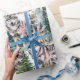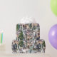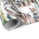 En vackert vattenfärgad skog som är papper och som innehåller ett paket med vargar, med varg unge, mor och far, utanför sin jord, som roterar en skog.