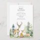 Skapa din egen personlig-babyduschinbjudan med enkel minimal design och vattenfärgsskogskonton.