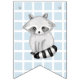 Skogslättslig babystuga med söt räv, tvättbjörn, björn och ekorre.