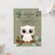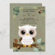 Charming Rustic babydusch-inbjudan med ett sött vitt uggla som genomsöktes på ett gren mot en skogsbakgrund. Perfekt för babyduschar i skogen, naturområdet eller gender-neutralt. Om du behöver någon annan matchande produkt eller anpassning kan du skicka ett vänligt meddelande via Zazzle.