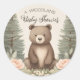 Denna vackra skogsskogskonstruktion har en söt brunbjörn omgiven av blommigtar och träd.