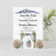 Ett förtjusande och unikt tomte-bröllop save the date-kort. Anpassa tre textrader och även en sektion på baksidan av kortet för mer information, om det behövs.