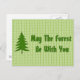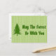 En enkel utformning av träd i grönt och ord "Må skogen vara med dig" aktualiserar det välbekanta hälsning med ett ekologiskt budskap som är välbehövligt i denna tid när våra skogar hotas av utrotning. välsignelsen och budskapet att våra skogar, träd och varandra alla är förbundna med varandra.