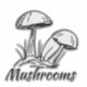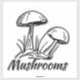 Roligt svampar på skogsmark. Hand plockade i bläck kalligraferingspenna. Enkel minimidesign, linje teckning