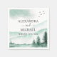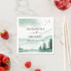 Den Moody Grönten Bröllop Napkins i Rustiska bergsskogsvattenfärgen på vit bakgrund - innehåller vacker och elegant manustypografi med moderna botaniska berg, träd, fåglar och grönenergi för den speciella Bröllopsdagen firande.
