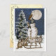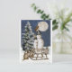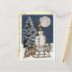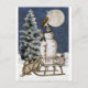 Skogsdjur och en glad snöman samlas för att fira vintershögtider.