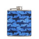 Skola av underbara vithajar mot en djupblå bakgrund.
