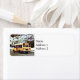 Skola Buss Hem på vinter Returadress Etikett
