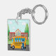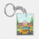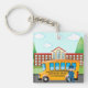 En skola buss och dess förare utanför en skola. Den här designen ser ut att vara effektiv i den här nyckelkedjan