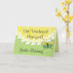 Det främsta pensionhälsningkortet, "vårt underbart avgår kalkar Rektor -Du", grönt och gult med vitdasies och fjärilsbakgrund. *Graphics och desgin av Gail Gabel*