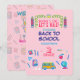 "Skolan är cool, låt oss styra" motiverande citat, tillbaka till skolan, 2:a klass, VÄLKOMMEN / EXAMEN, TILLBAKA TILL SKOLAN / JAG ÄLSKAR SKOLAN GRAFISK DESIGN / Barnkalasdekorationer, presenter, Färgglada, Tecknad film. Glad första skoldag! Lärardagen, Presenter till examen för pojkar och flickor, Examensannonser, Studentliv, Examens captions, Kort, Lärarmeddelanden, Examen, Första klass, Välkommen, Examen dekorationer, Examens citat. Modern design med skolmaterial Retro handritade ikoner, penna, pensel, krona, skolbagge äpple, böcker, anteckningsbok, Glob, skolbuss och mer, på rosa söt bakgrund - för två sidor (fram och