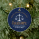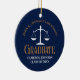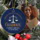 Den här chicen marinblått och guld anpassningsbar julprydnaden i studenten har klassvis typografi för en klass av 2025 student och deras professionell foto. Anpassa med ditt studieår under den vita skalan av rättvisa för en underbar personlig fotografgåva till advokat eller advokat.