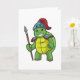 Sköldpadda som krigare med spjut och hjälm kort