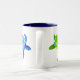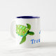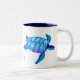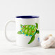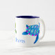 Färgrik mugg, med diagrammen av målade sköldpaddor i blått och grönt. Skräddarsy texten för att personifiera denna gulliga kaffe/kakaomugg.