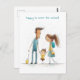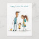 Det här vykortet är en söt illustration av en lycklig-skolflicka som håller händer med sin mor och far.