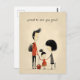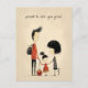 Den här bakåtriktade vykortsdesignen har en söt skolflicka som håller händer med far och mor. Du kan anpassa standardtexten "stolt att se dig växa!". Det här är en fin design för att skicka ditt back to school-relaterade önskemål.