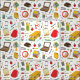 Unikt skolrelaterat tyg med klassrumsartiklar och ett skolbussmönster.
