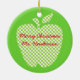 Lärarens julklapp keramiska prydnadsföremål, i en grönt och vitt schaktat mönster, med silhuetter av en grönt, rött och ett gult äpple staplat. Röd text på båda sidor är redot att anpassa sig till det du vill läsa. En utmärkt presentidé till en lärare i julklapp.