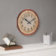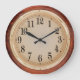 Klassisk skolväggklocka i ett realistiskt polerat trä och mässa ram.