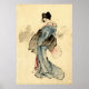 Kvinnor, fullt porträtt, stående, vänd lämnat, håll fläkt i höger hand, bära kimono med checkutformning. Från 1840 japanska bläck teckning från Katsushika Hokusai. Alla Höger reserverade © 2012 Padre art.