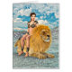3D-rendering av en vacker ung kvinna och en lejon på ett ökenlandskapets bakgrund