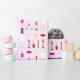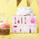 Utformning av skönhetsvård. Makeup-produkter på bakgrunden för pastellernas rosa. Röd, lila läppstift och läppstift, med ro och argarin. Lyft penna med svart ögonfransar, ögonfransar. Parfym med snurrande petaler. Shiny nagel polerar. Bright silver står spegel med vita blommor.