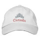 Visas i vitt med en broderiserad stygn av rött färg och silver krona. TEXT läser KANADA. Den här hatten har endast text framtill. Justerbar bakåt. Anpassa det här objektet och kom ihåg att välja hatt färg.