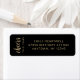Elegantens 21:a födelsedag med party-returetiketter innehåller frasen "heers to 21 years" i skriptet guld-färgad och sans serif typsnitt på svart bakgrund.